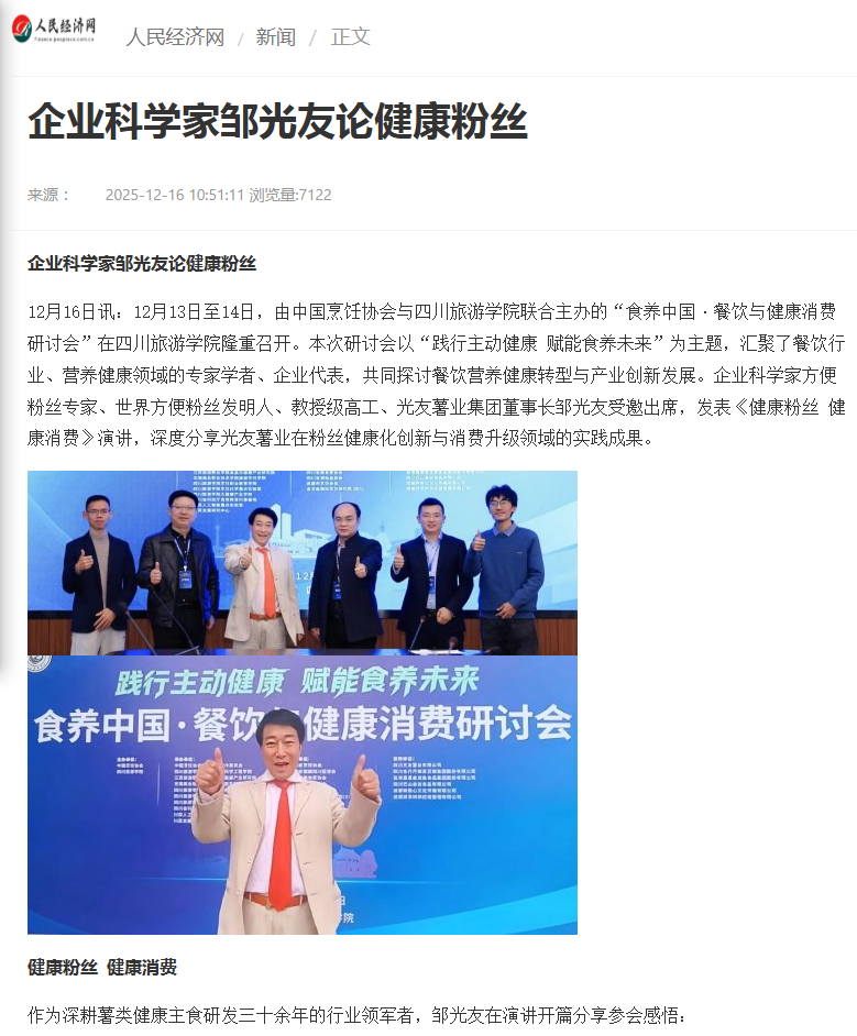 轉(zhuǎn)載人民經(jīng)濟(jì)網(wǎng)-企業(yè)科學(xué)家鄒光友論健康粉絲